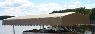 The Roof is made with an Aluminum frame covered with a very durable Vinyl that has 2 wind pressure flaps, one at each end. They come in multiple colours as seen in the colour chart.